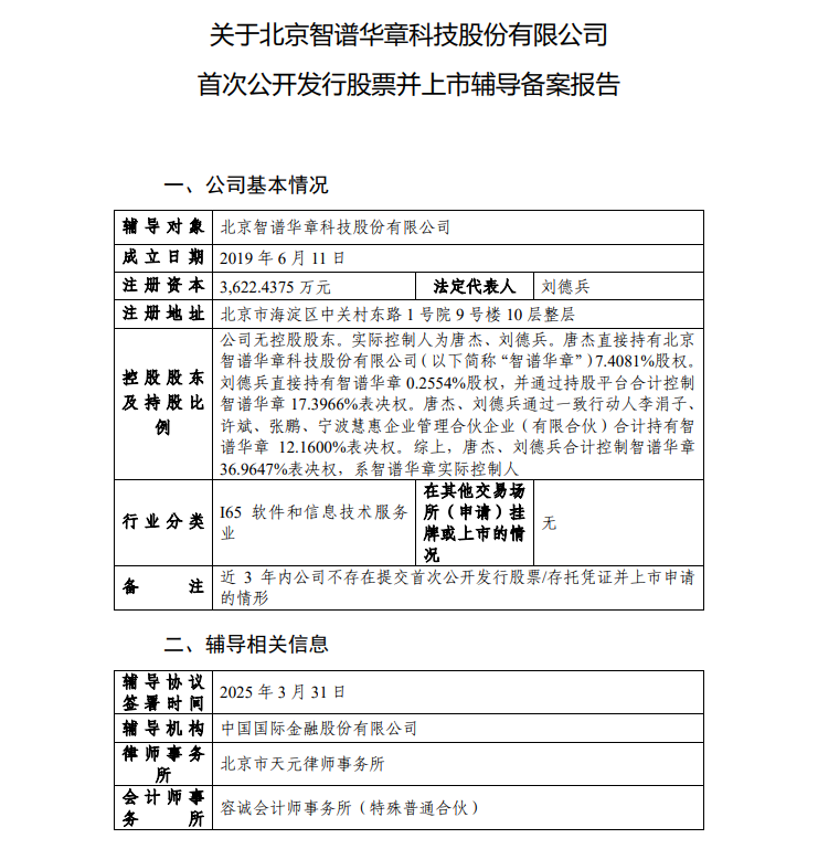 大模型独角兽智谱2025年4月14日在北京证监局办理辅导备案,由中国国际金融股份有限公司担任辅导机构,据介绍,智谱在人工智能领域有诸多技术和产品布局,此类辅导为其上市进程做准备。